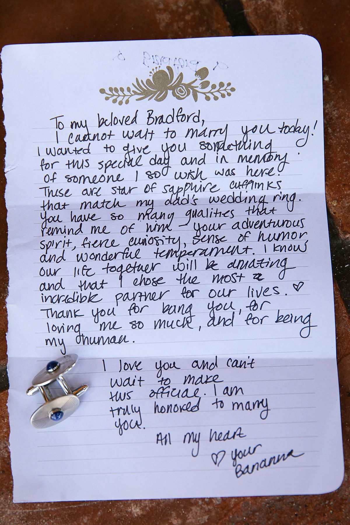 Brad personally drove this personal touches they provided at the wedding - custom water bottles and ceramic mugs, engraved pocket knives for the groomsmen, silk robes for the bridesmaids, and shells for everyone to 'whisper a wish' to the bride and groom during the ceremony. There were many tears and smiles to photograph during this moment.