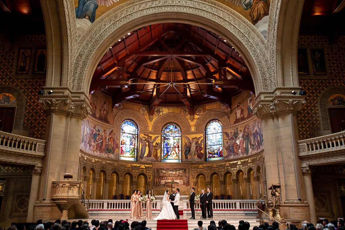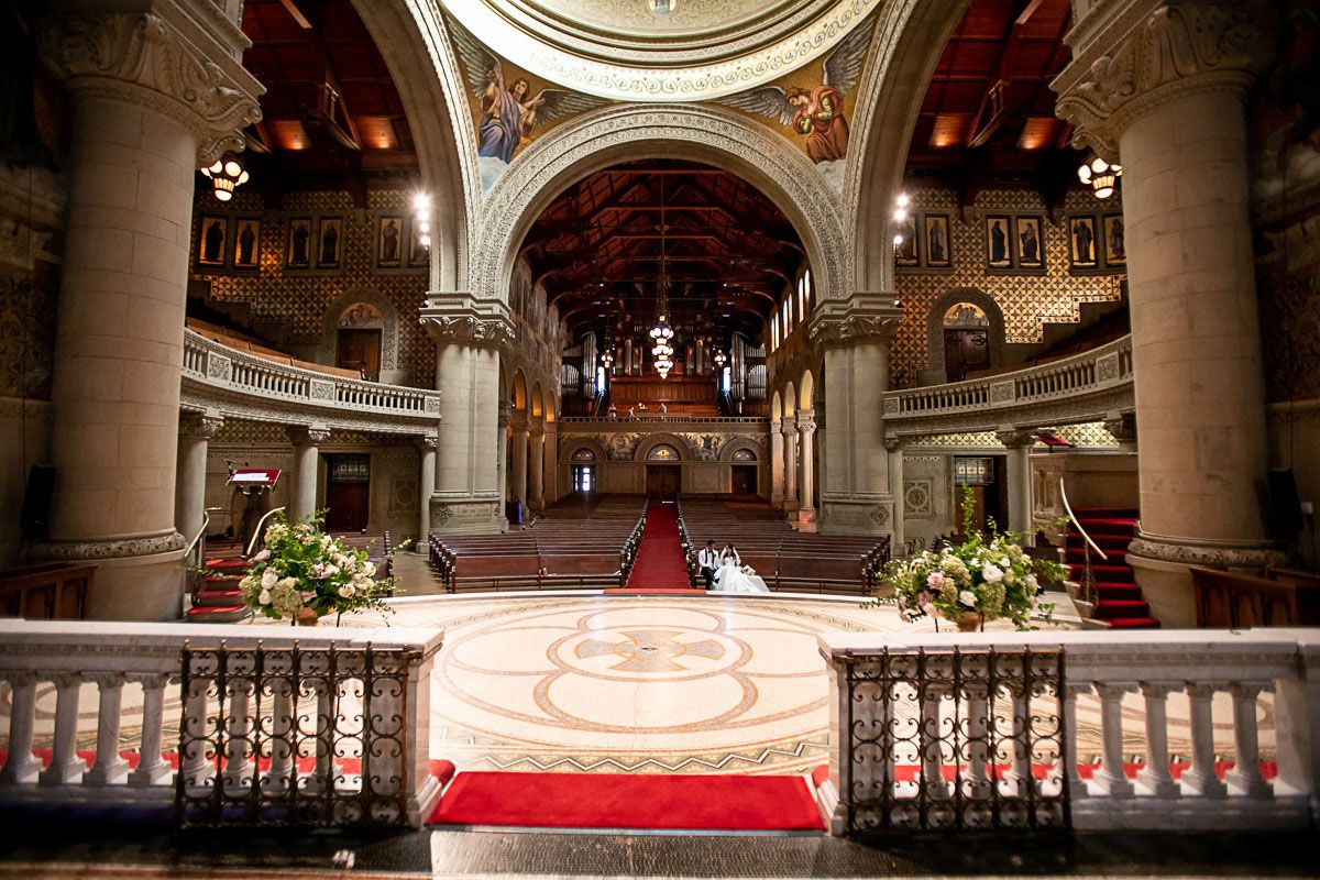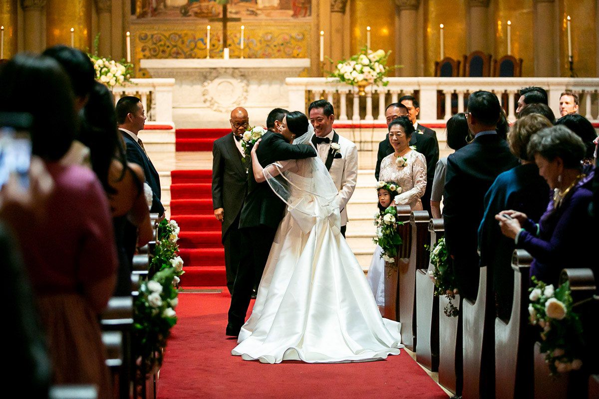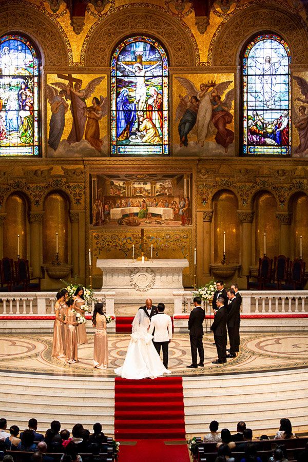Chaai and Brian kept the decor inside the church minimal, with two large floral arrangements at the altar and a red carpet leading down the aisle. The wedding party stood in a semi circle around the couple, vows were exchanged and voila, Chaai and Brian were officially married!