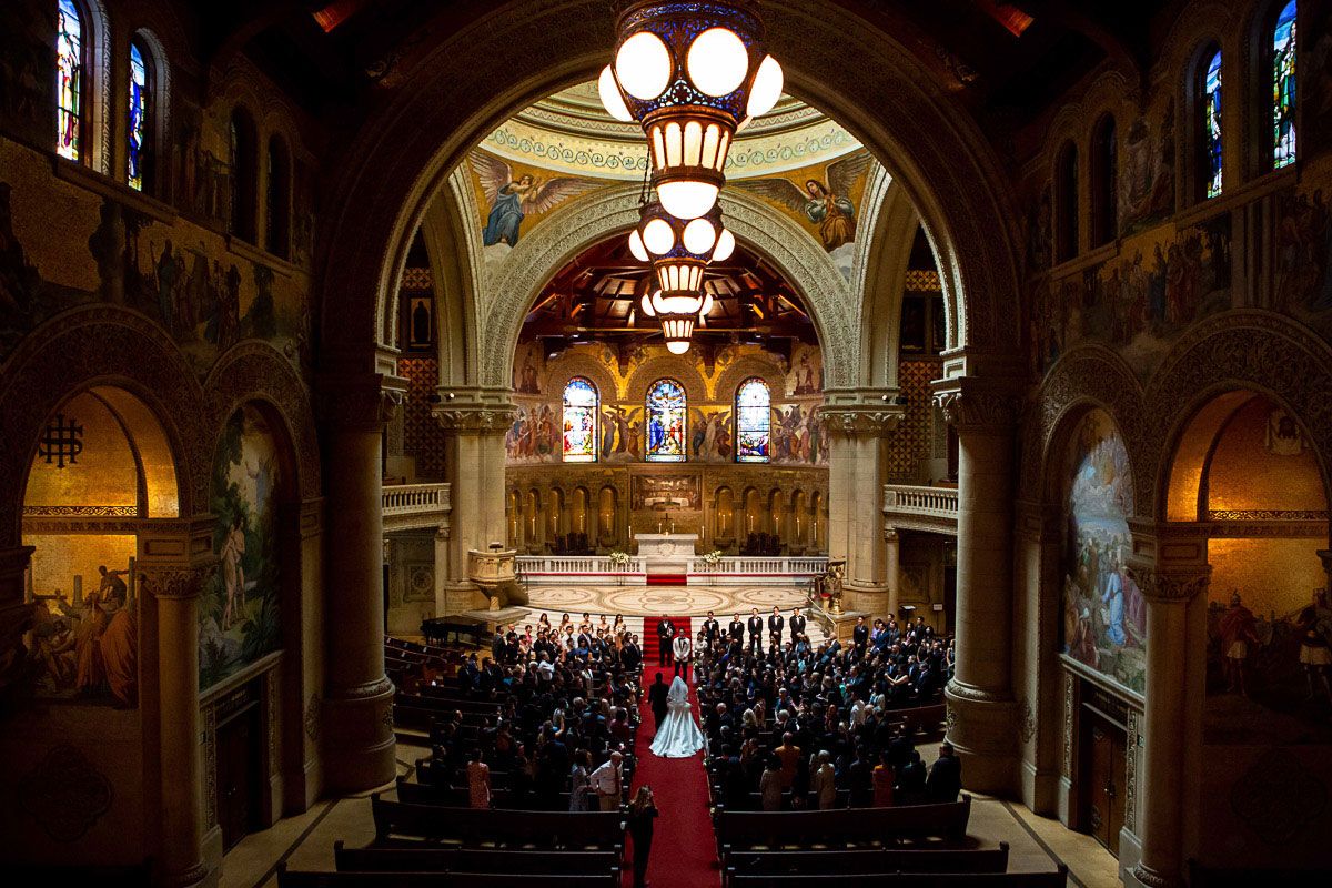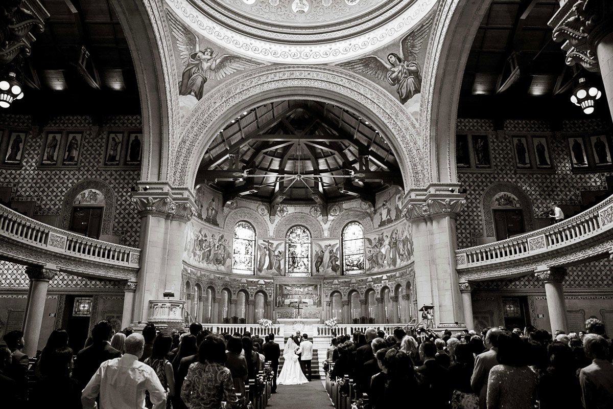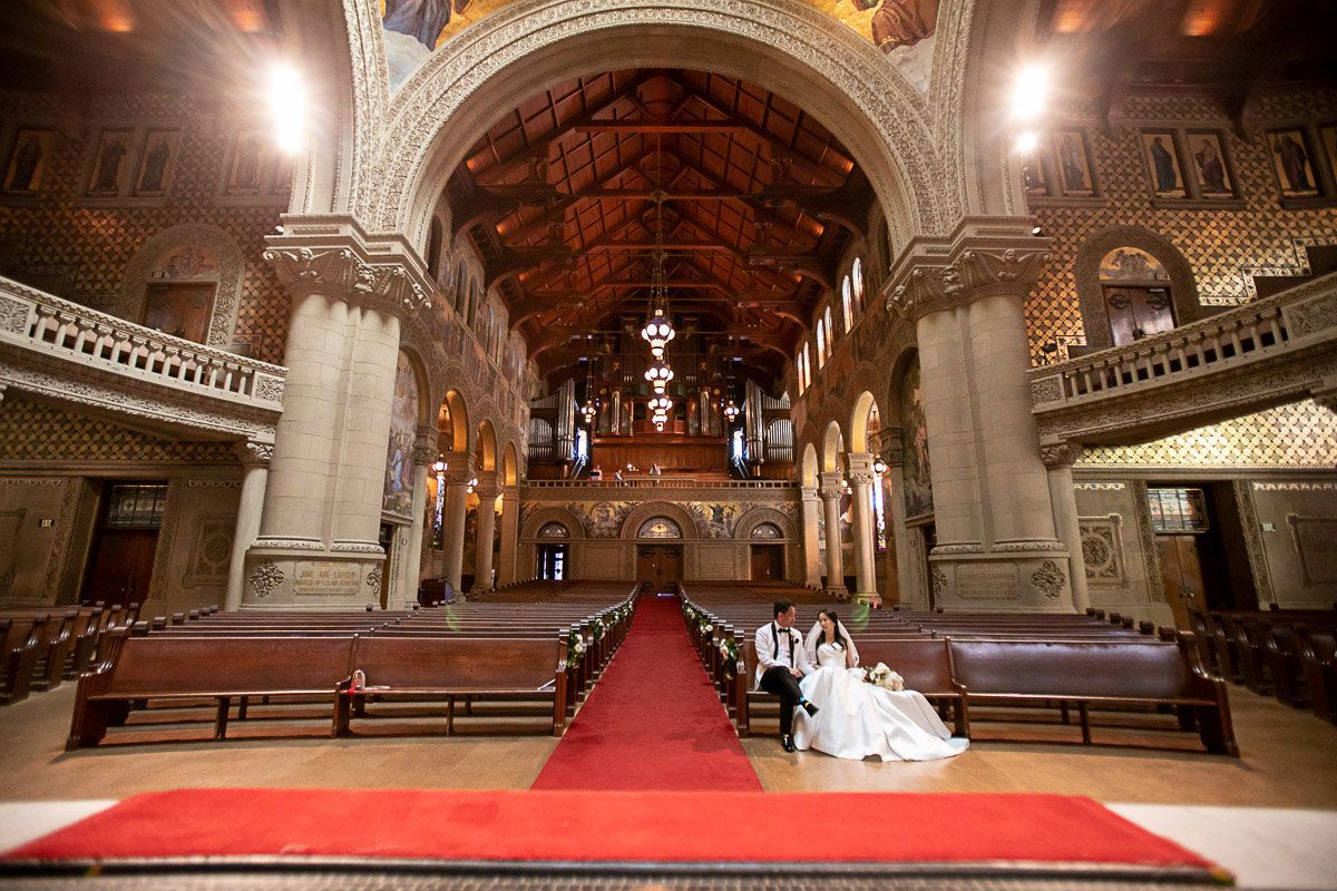 Chaai and Brian kept the decor inside the church minimal, with two large floral arrangements at the altar and a red carpet leading down the aisle. The wedding party stood in a semi circle around the couple, vows were exchanged and voila, Chaai and Brian were officially married!