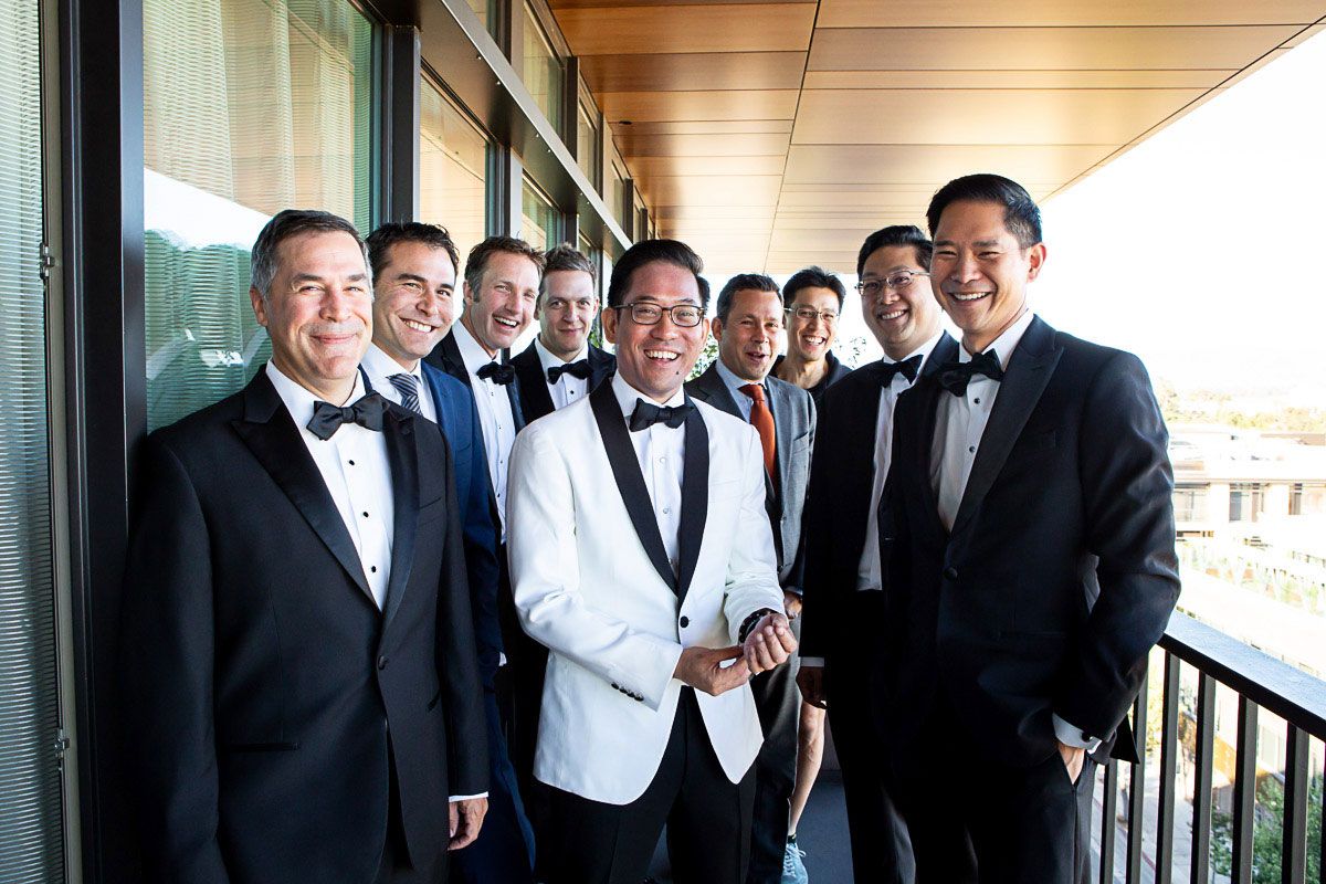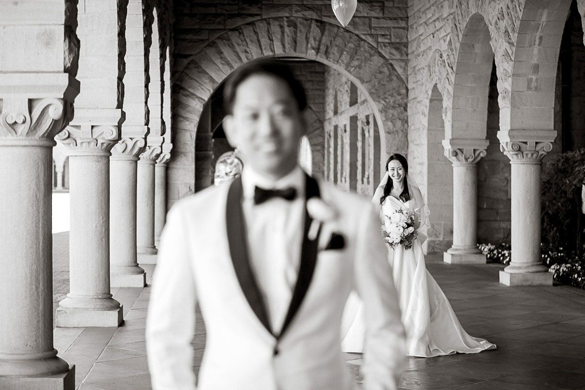 Ceremony Venue: Stanford Memorial Church| Reception Venue: Filoli Gardens| Design & Planning: Morgan Events| Floral Design: Revel Floral| Catering & Cake: Taste Catering| Rentals: Bright Event Rentals| Hensley Event Resources| Napa Valley Linens| Lighting: Got Light.| Entertainment: Take 2 via Hip ServiceEntertainment | Live Painting Artist: Talia Koval| Transportation: Global Transportation| Restrooms: The Water Cottage| Bride's Hair/Makeup: J Beautique| Wedding Gown: Pronoviaswith shoes by Miu Miu| Bride's Reception Gown: Grace Kelly | Groom's Tuxedo: Practical Tailor, Hong Kong with Tom Ford bow tie & handkerchief | Wedding Rings: Tiffany & Co.