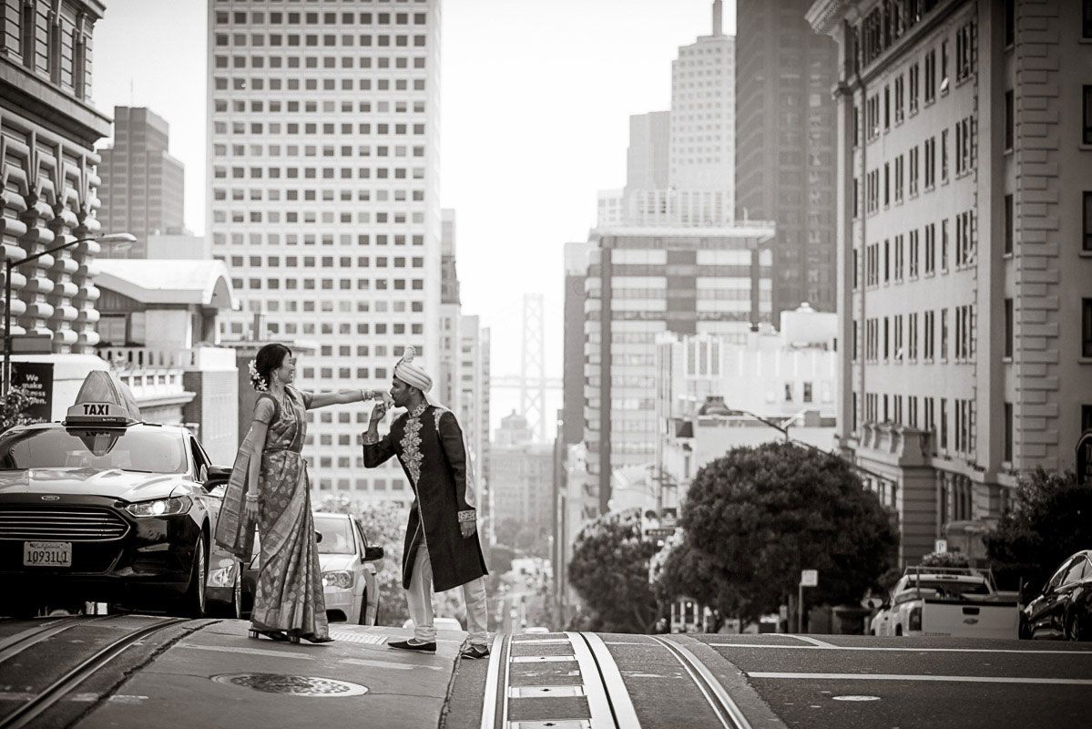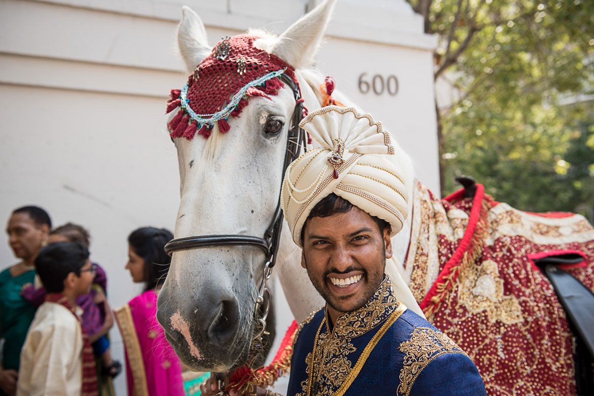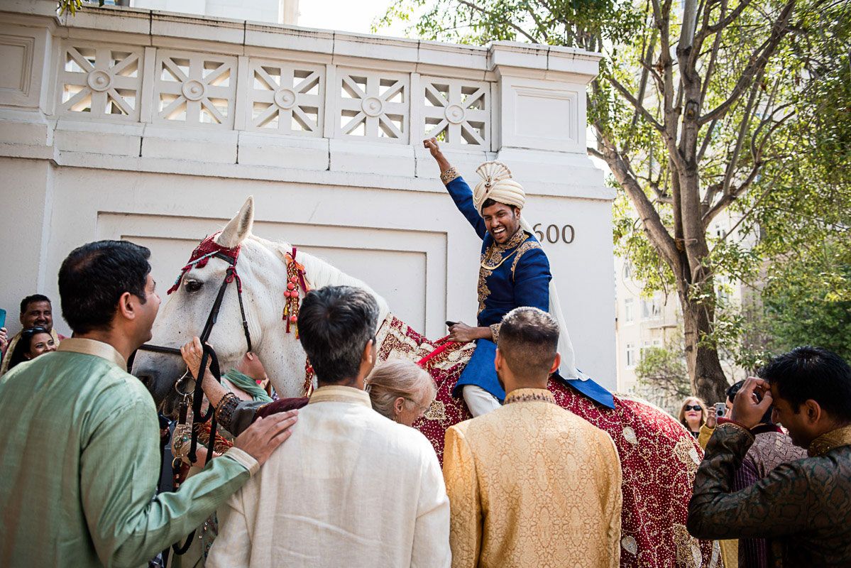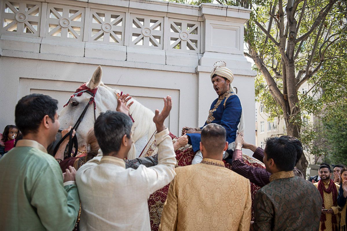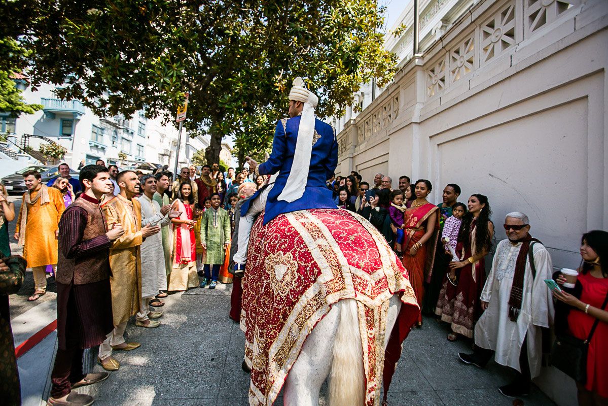Venue & Cake:Â Ritz Carlton San Francisco| Photography & Video:Â Arrowood Photography| Wedding Planning & Decor:Â Floramor Studios| Bride's Hair/Makeup:Â Liz Fanlo| Gown:Â Pronovias| Baraat Horse:Â Buzzard's Roost|Â Lighting & DJ:Â Verducci Events| Dohl Player: KGS, Puran Singh | Catering:Â New Delhi Restaurant| Officiants: Shashidhara Somayaji & Carl Press