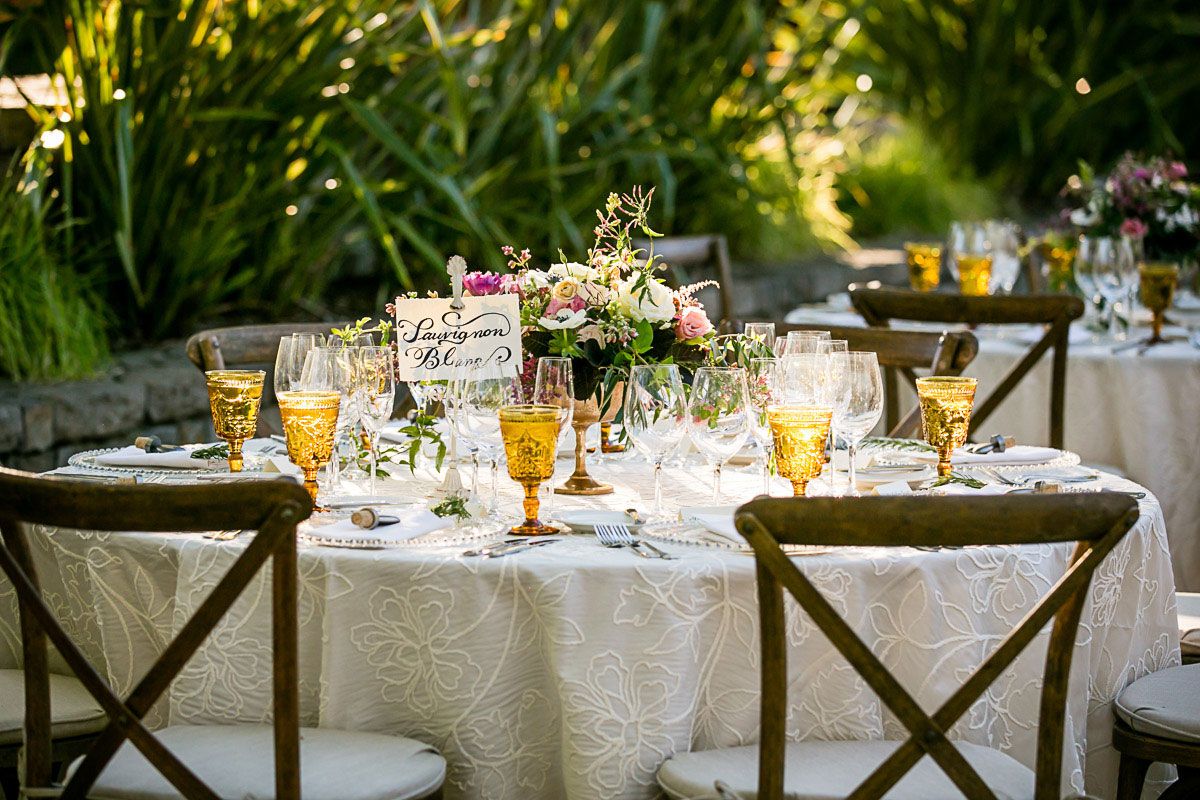 Venue: Vintage Estates Yountville| Design & Planning: Napa Valley Custom Events| Floral Design: Julie Stevens DesignPhotography: Arrowood Photography | Cake: Perfect Endings| Officiant: Peter Grassoti Ceremony Music: Bellarosa Trio| Reception Music: Josh Duke, Boutique DJ's| Bride's Hair/Makeup: Andrea Limon, Wedding Belles Linens: La Tavola Fine Linens| Tabletop: Bright Event Rentals| Lounge Furniture: Encore Events Rentals Draping & Chandeliers: Five Star Productions| Transportation: California Wine Tours