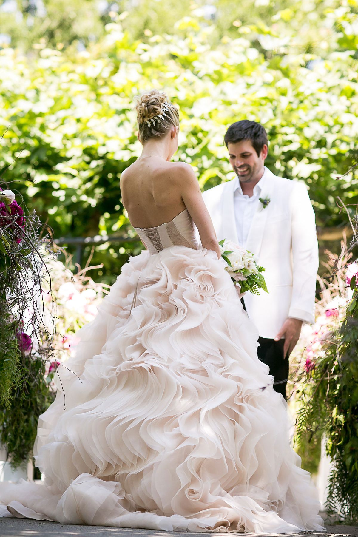 Many wedding guests traveled north from Los Angeles and the bride and groom enlisted Favor Custom Gifts to create wine country-themed welcome boxes prepared with luxury refreshments and a fresh pink peony. The venue was decorated with gorgeous flowers everywhere- draped over a garden bridge, hanging above the tables, climbing down the sides of the arbor. I always love photographing a romantic garden wedding when Kathleen Deeryis the floral designer. The plated dishes by Paula le Duc Fine Cateringwere works of fine art, fitting for a chef’s wedding celebration. (Did I mention Christopher is a chef?!) Throughout the entire weekend, Jamie Gansler of A Savvy Eventkept everything seamless and on schedule. I hope you fall in love with this beautiful Beaulieu Gardenswedding and gain a little inspiration for creating your own romantic garden wedding. *Note: This wedding has been featured on Style Me Pretty! Click over to the entryto read Mica & Christopher's favorite wedding moments.